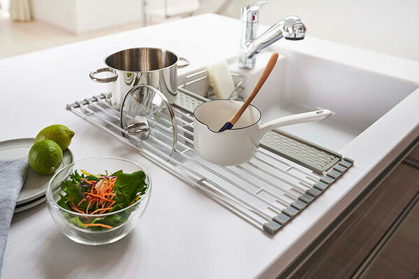 ●クルッと巻いて省スペースに収納できる便利な折り畳み水切り。