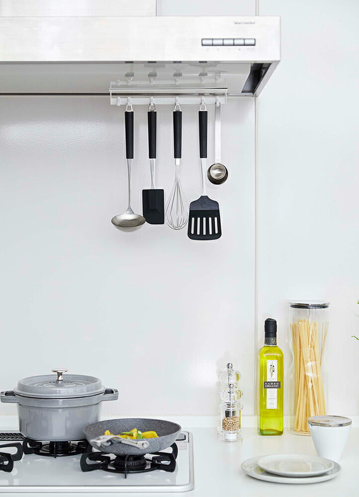 ●調理道具・鍋つかみ・計量スプーンなど、よく使うキッチンツールを掛けておくのに便利!