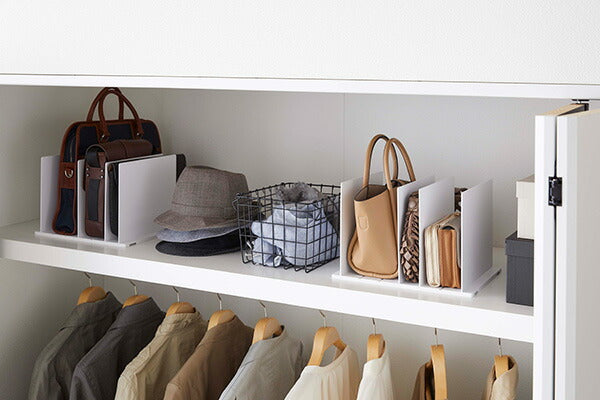 ●倒れやすい鞄も立てて収納できるから、場所を取らずスリムに収納できます。