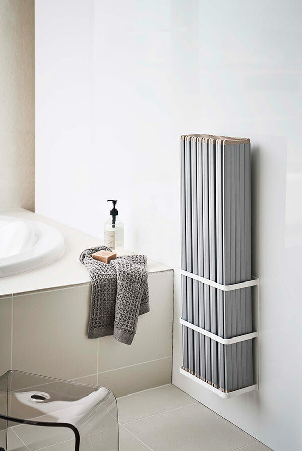 ●置き場所に困る風呂蓋を壁面にマグネットでスリムに収納。