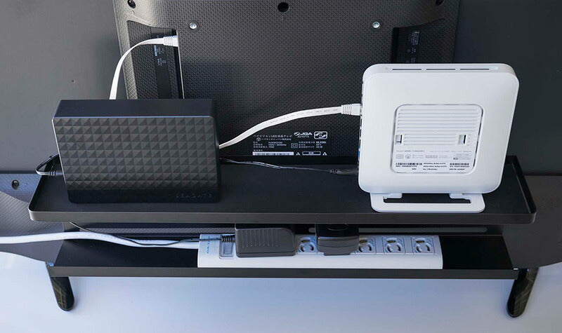 ●テレビ裏スペースを有効活用!ルーターや外付けHDD、電源タップなどをすっきり一括収納。