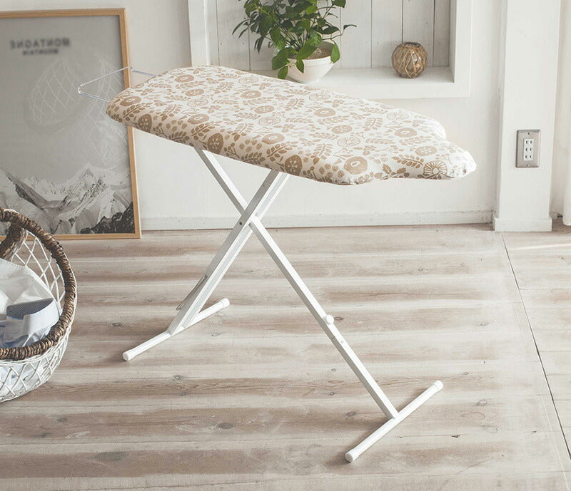 ●品質表示: 表面布:ポリエステル・綿、クッション材:ポリエステル、ボタンプレスゾーン(凸凹吸収クッション):ポリウレタンフォーム、天板・脚部:スチール(粉体塗装)、アイロン置台:スチール(クロームメッキ)、キャップ:ポリエチレン
