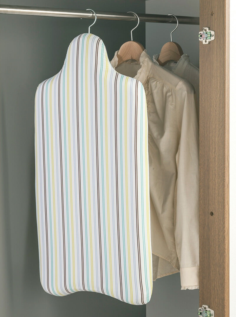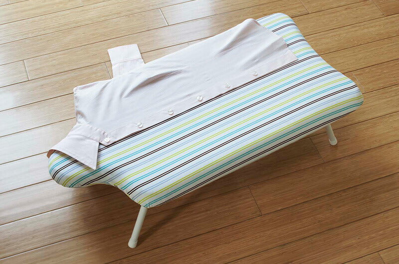 ●後身ごろ: シャツを台に着せ掛け、後身ごろも、一気にアイロン掛け!