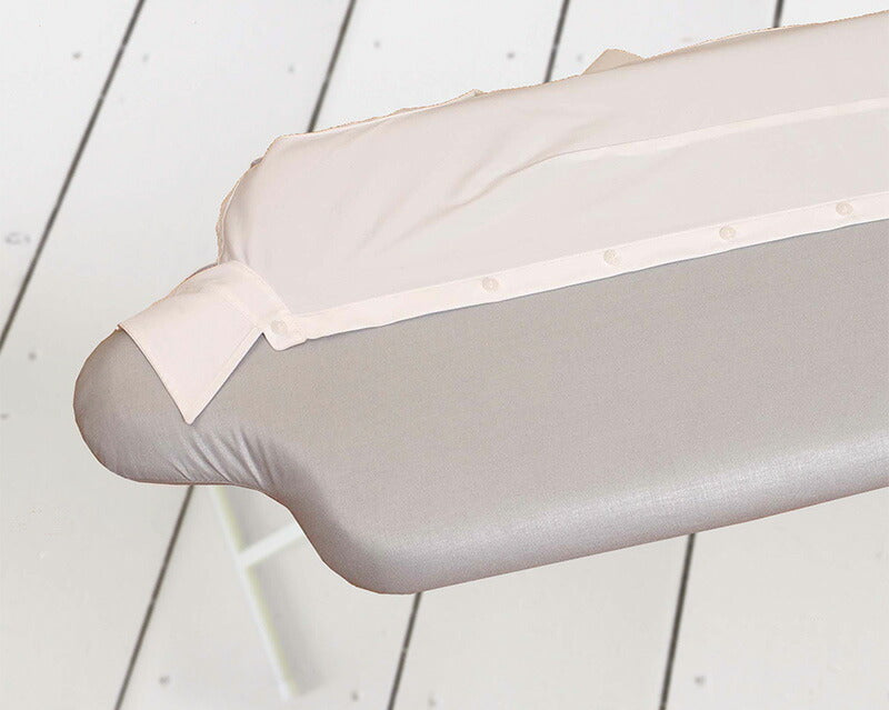 ●品質表示: 表面布:綿100%(アルミコーティング)、クッション材:ポリエステル、ボタンプレスゾーン(凸凹吸収クッション):ポリウレタンフォーム、天板・脚部:スチール(粉体塗装)、アイロン置台:スチール(クロームメッキ)、キャップ:ポリエチレン