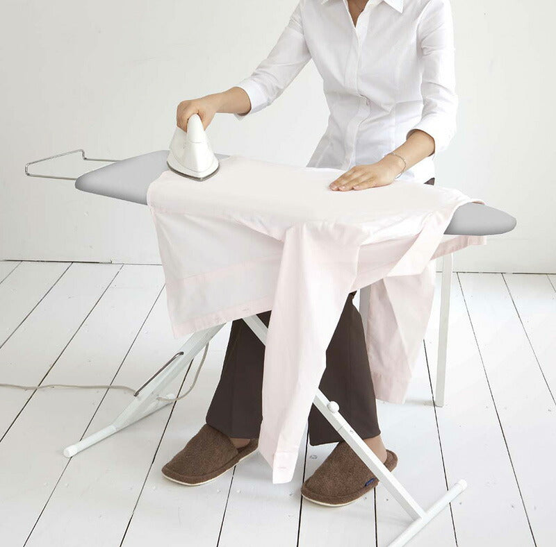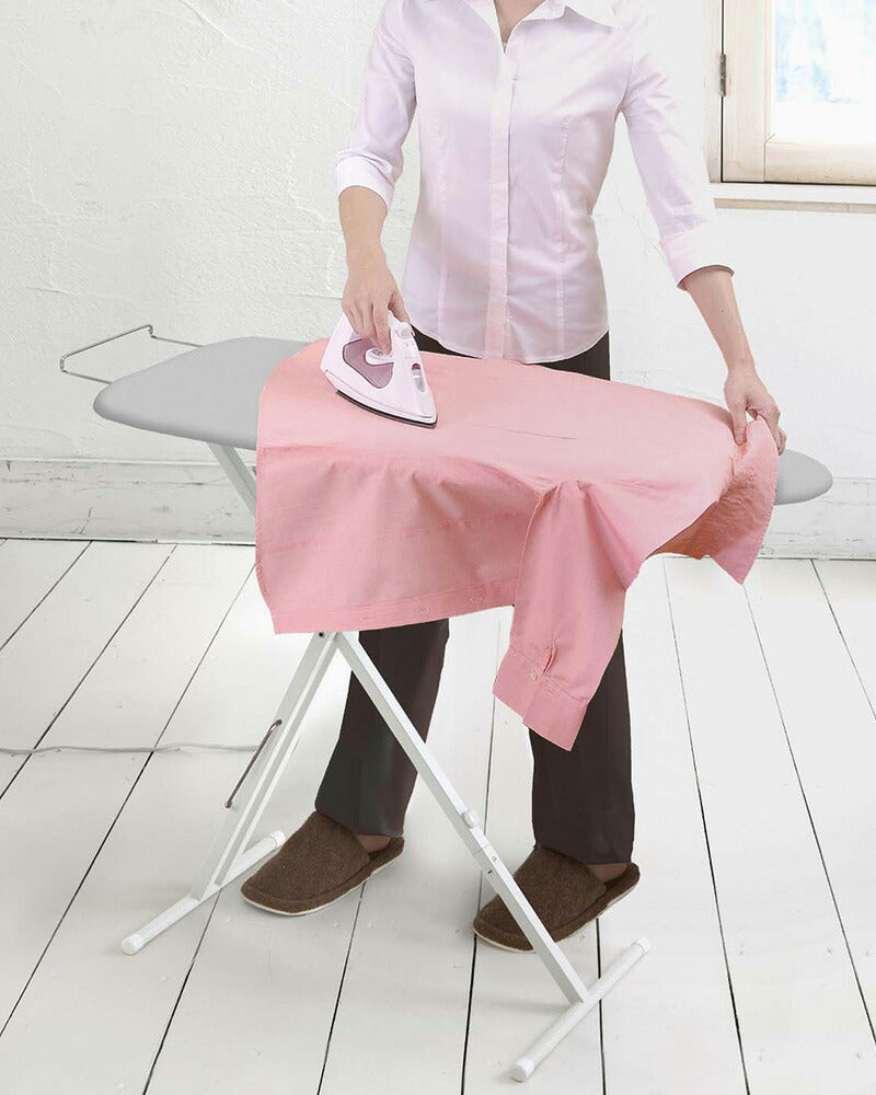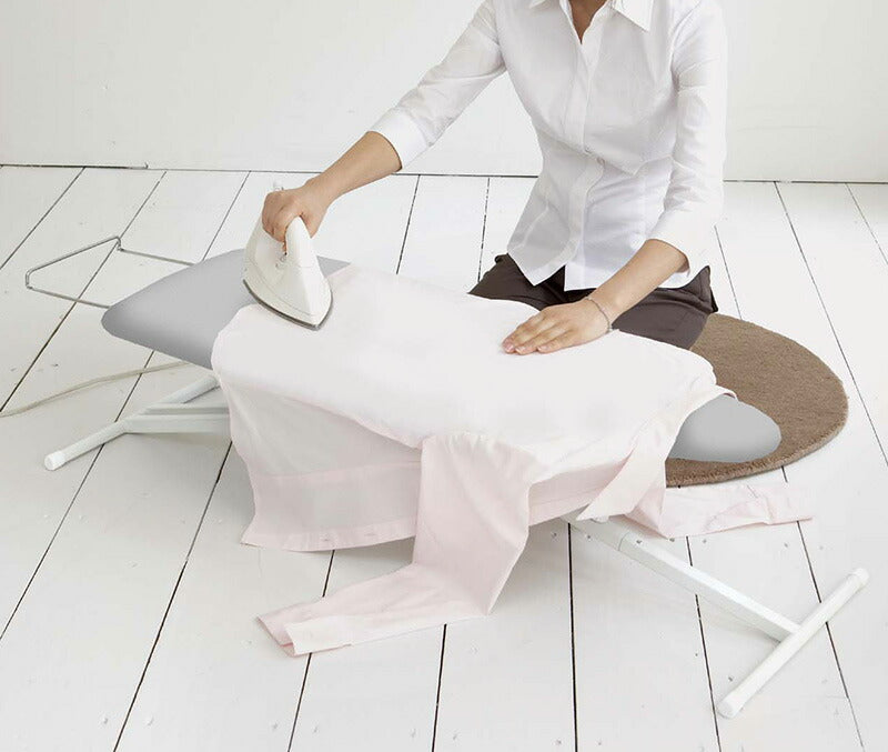 ●立っても座っても楽にアイロンがけができるスタンド式アイロン台。