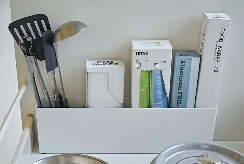 ●ラップやポリ袋などのボックス類、キッチンツール・まな板などを一括収納!