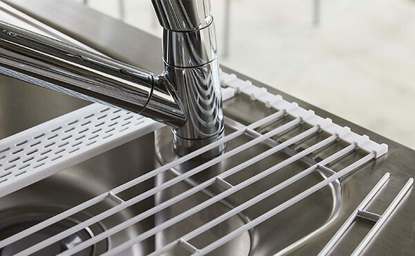 ●クルッと巻いて省スペースに収納できる便利な折り畳み水切り。