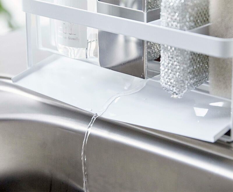●水が流れる構造のトレーでスポンジやボトルから出る水を直接シンクの中に流せます。