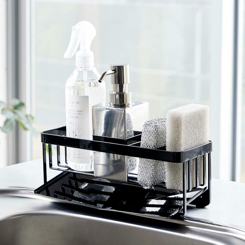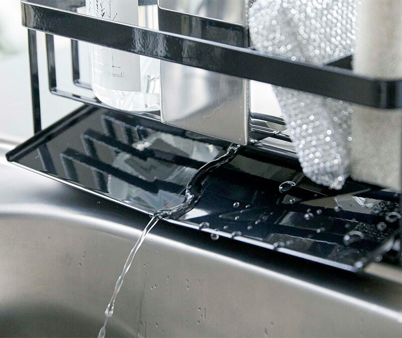 ●水が流れる構造のトレーでスポンジやボトルから出る水を直接シンクの中に流せます。