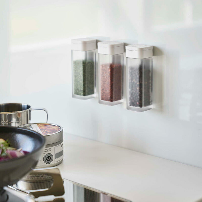 ●マグネットが付く冷蔵庫やパネルに簡単取り付けの調味料容器シリーズ。