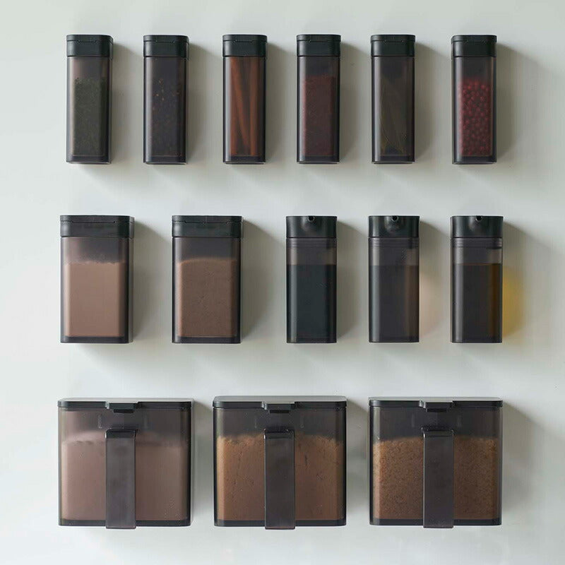 ●マグネットが付く冷蔵庫やパネルに簡単取り付けの調味料容器シリーズ。
