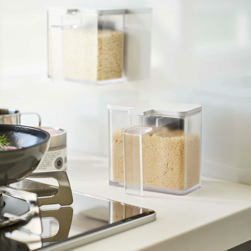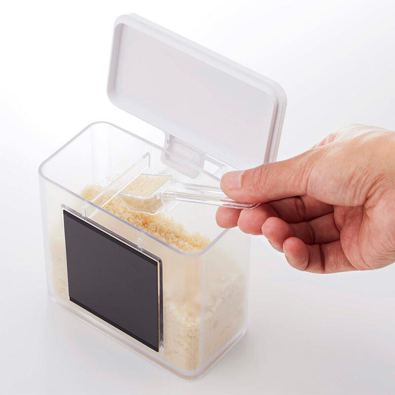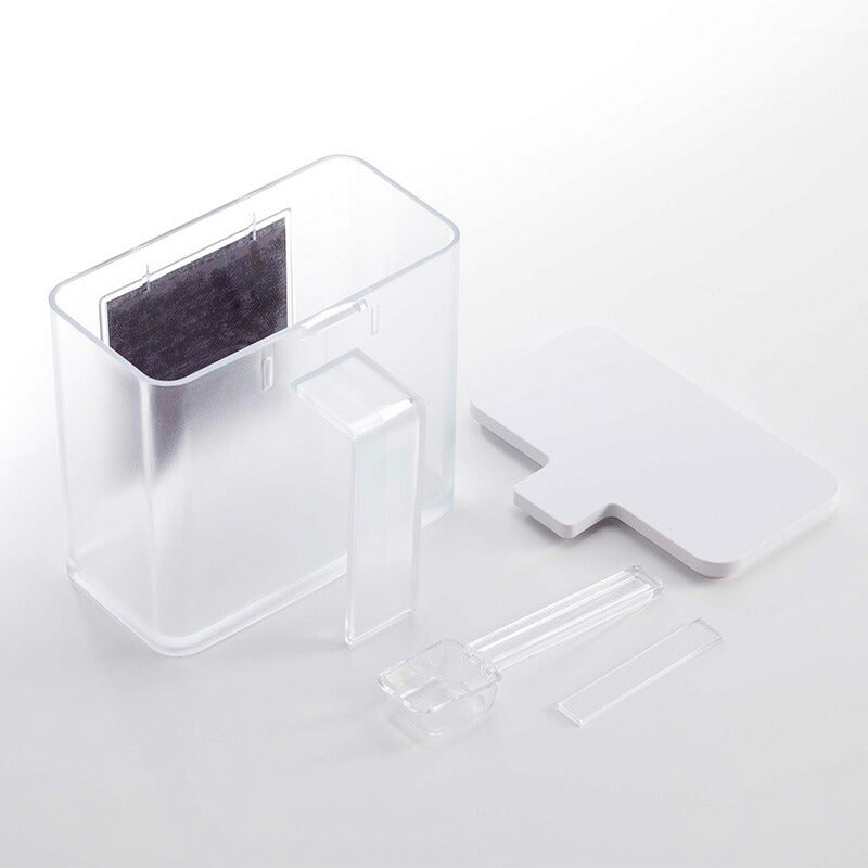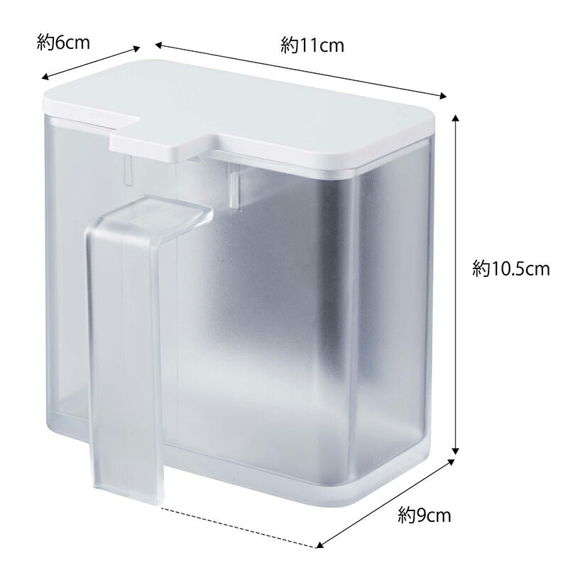 ●品質表示: 容器・スプーン・蓋・すり切り板:ポリスチレン樹脂、マグネット、滑り止め:シリコーン