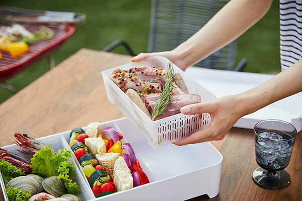 ●商品サイズ: 約42×25×11.5cm(蓋使用時)、本体トレー:約42×25×8.5cm、水切りトレー:約14.5×24×6.7cm(1つあたり)、トレー:約12×24×6.7cm
