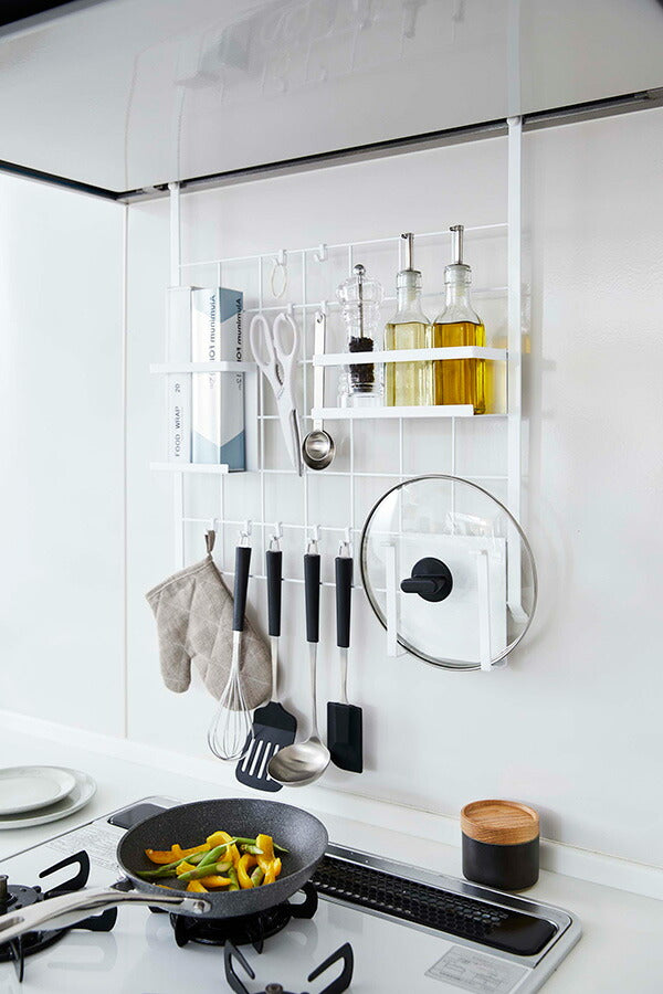 ●レンジフードに簡単取り付けの組み合わせ自在収納パネル。