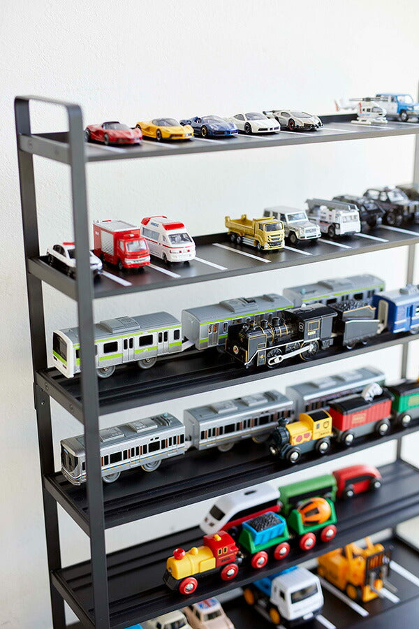 ●ミニカーやレールトイを飾りながら収納できるラック。