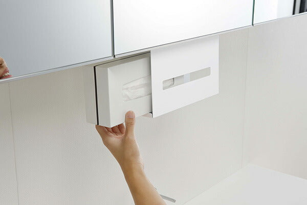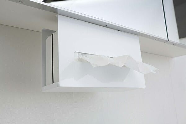 ●洗面所の吊り戸棚に浮かせて取り付けられるペーパーボックスホルダー!