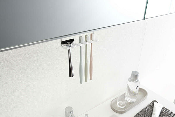 ●洗面所の吊り戸棚に浮かせて取り付けられる歯ブラシホルダー!