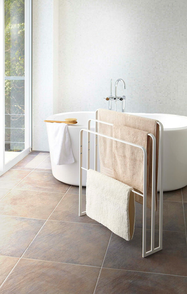 ●大判サイズのバスタオルが干せて、下段のバーにはバスマットなども干せます。