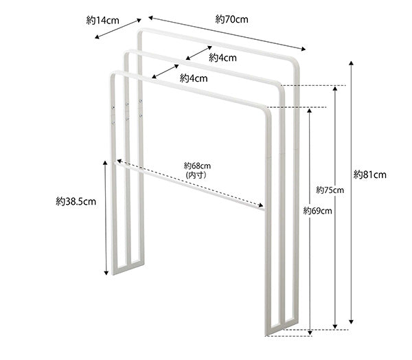 ●内寸サイズ: フレーム高さ:約75cm(中段)、約69cm(下段)、バスマット用バー高さ:約38.5cm、フレーム間隔:約4cm、バスマット用バー内寸:約68cm