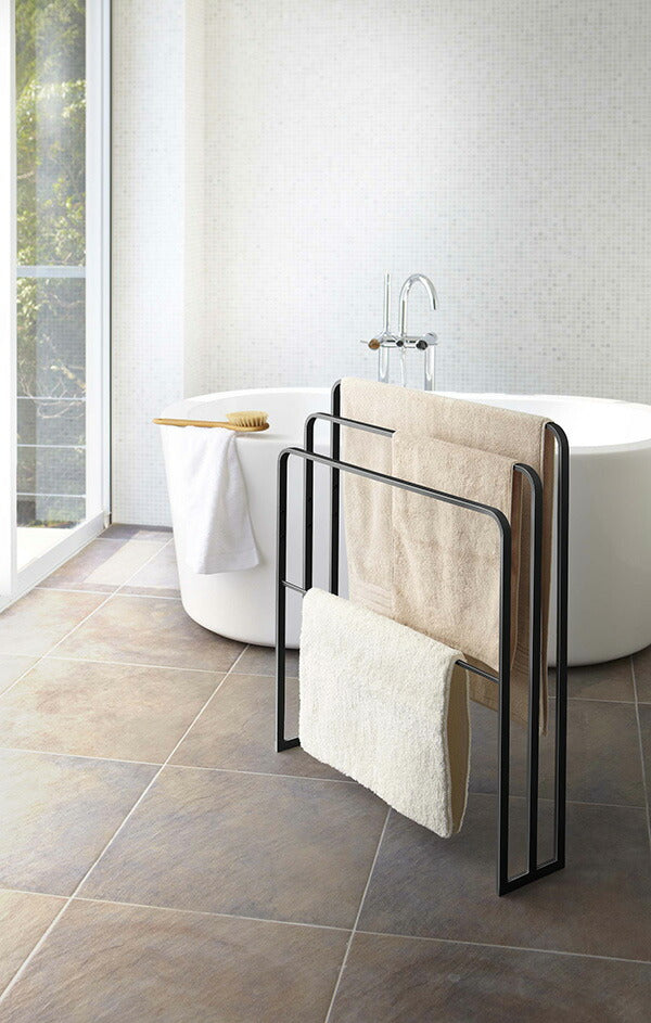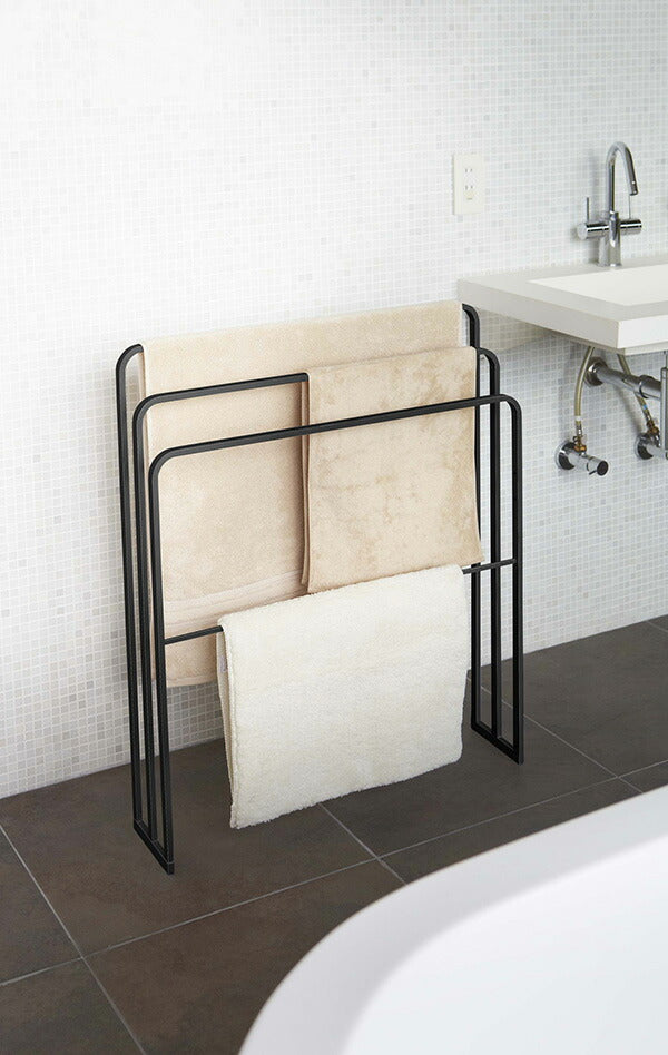 ●大判サイズのバスタオルが干せて、下段のバーにはバスマットなども干せます。