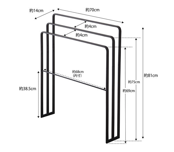 ●内寸サイズ: フレーム高さ:約75cm(中段)、約69cm(下段)、バスマット用バー高さ:約38.5cm、フレーム間隔:約4cm、バスマット用バー内寸:約68cm