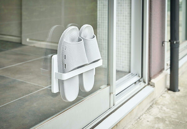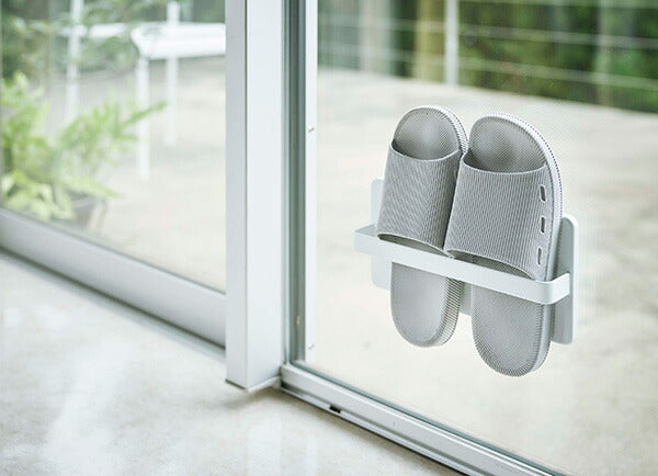 ●雨や風を避けてベランダスリッパを室内の窓や扉に吸盤で付けて簡単収納!