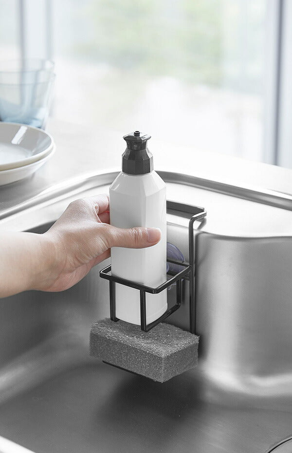 ●台所用洗剤ボトルとスポンジをまとめてシンクにコンパクト収納!