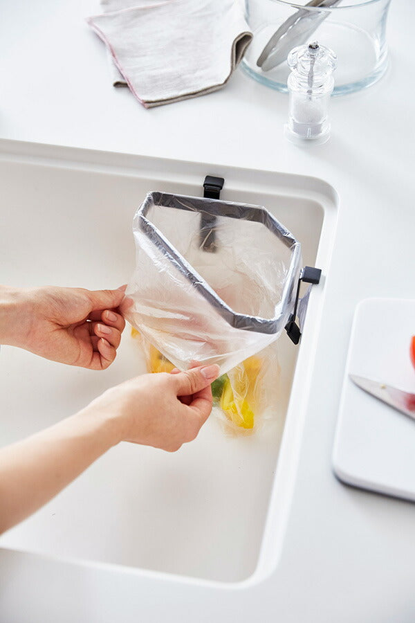 ●ポリ袋を掛けて調理中にでるゴミをその場でポイ!