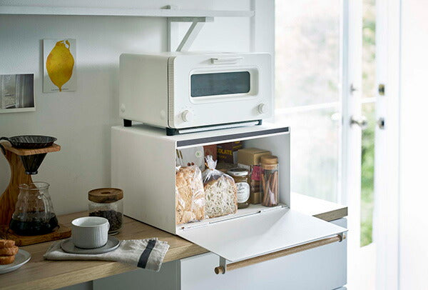 ●キッチンカウンターなどで雑然としがちなパンやお菓子、調味料などを隠しながら美しく収納できる収納ケースです。