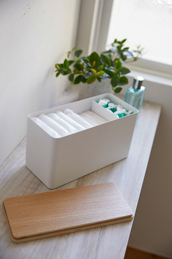 ●サニタリー用品をさりげなく収納できる木蓋のケースです。