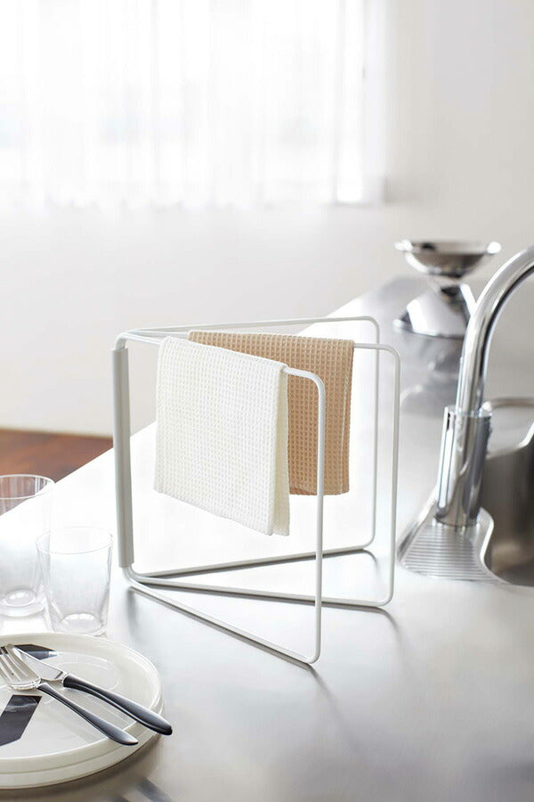 ●簡単にさっと広げて布巾を3枚掛けられる、シンプルな構造のハンガー。