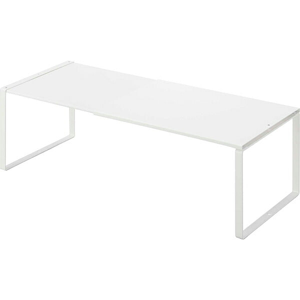 ●伸縮できるから収納場所のサイズに合わせて横幅を調整できる丈夫なスチール製伸縮棚。