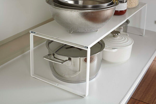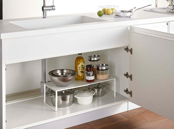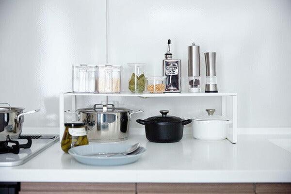 ●鍋やフライパンなどの大きなものから、調味料やラップなどの小さなキッチン小物まで収納できます。