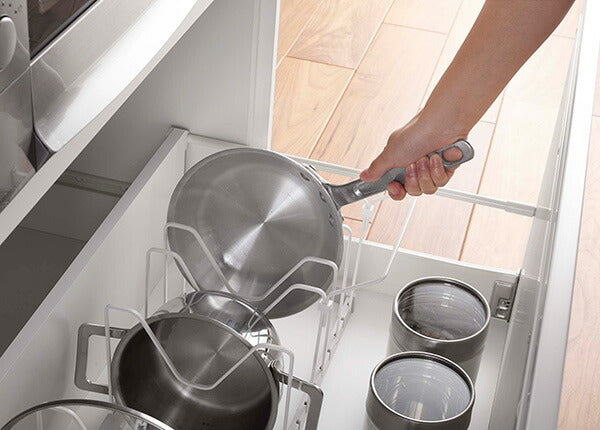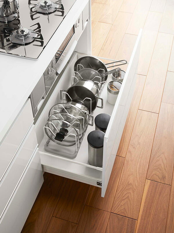 ●鍋やフライパンのサイズに合わせて仕切りパーツの位置は3cmごとに調整可能。