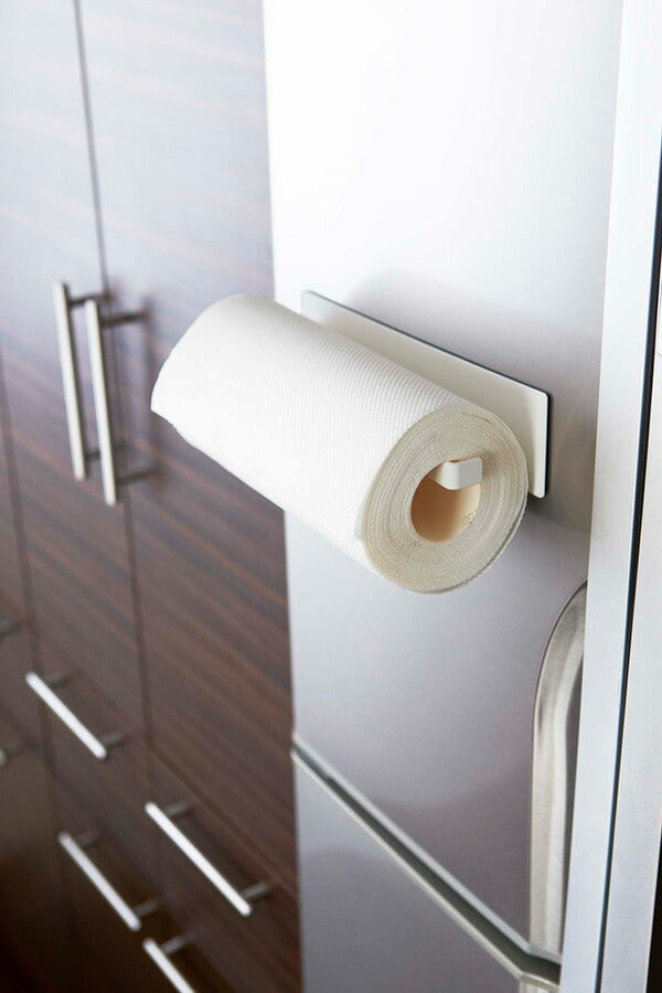 ●冷蔵庫の扉や側面に磁石で簡単取り付けのキッチンペーパーホルダー。