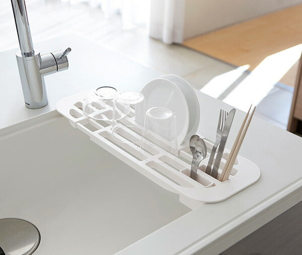●シンクの角にぴったりフィットの伸縮水切りラック。
