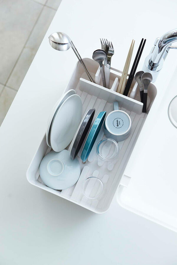 ●菜箸・カトラリー・調理道具などを分別できる仕切り付き。