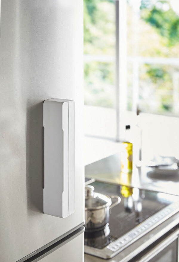 ●マグネットで冷蔵庫横などに貼り付けて収納できます。