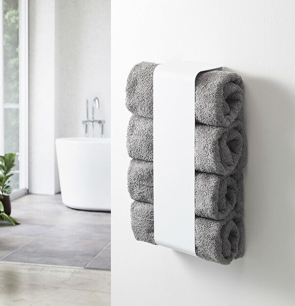 ●バスタオルを丸めて洗濯機や壁面にすっきり収納。