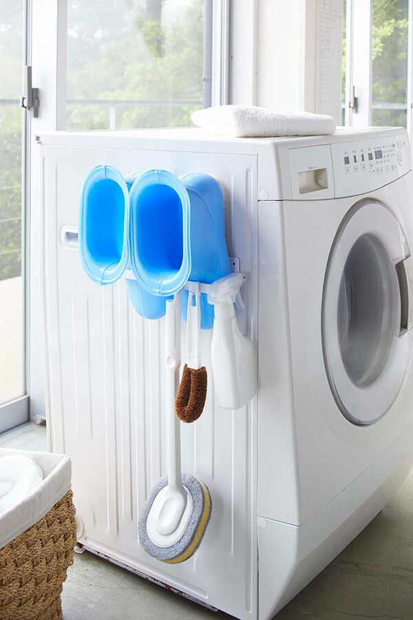 ●置き場所に困るバスブーツを洗濯機横に磁石でスリムに収納。