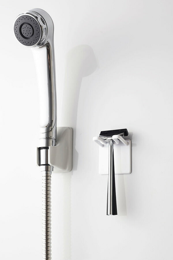 ●マグネットが付く浴室壁面に簡単取り付けのヒゲ剃りホルダー。