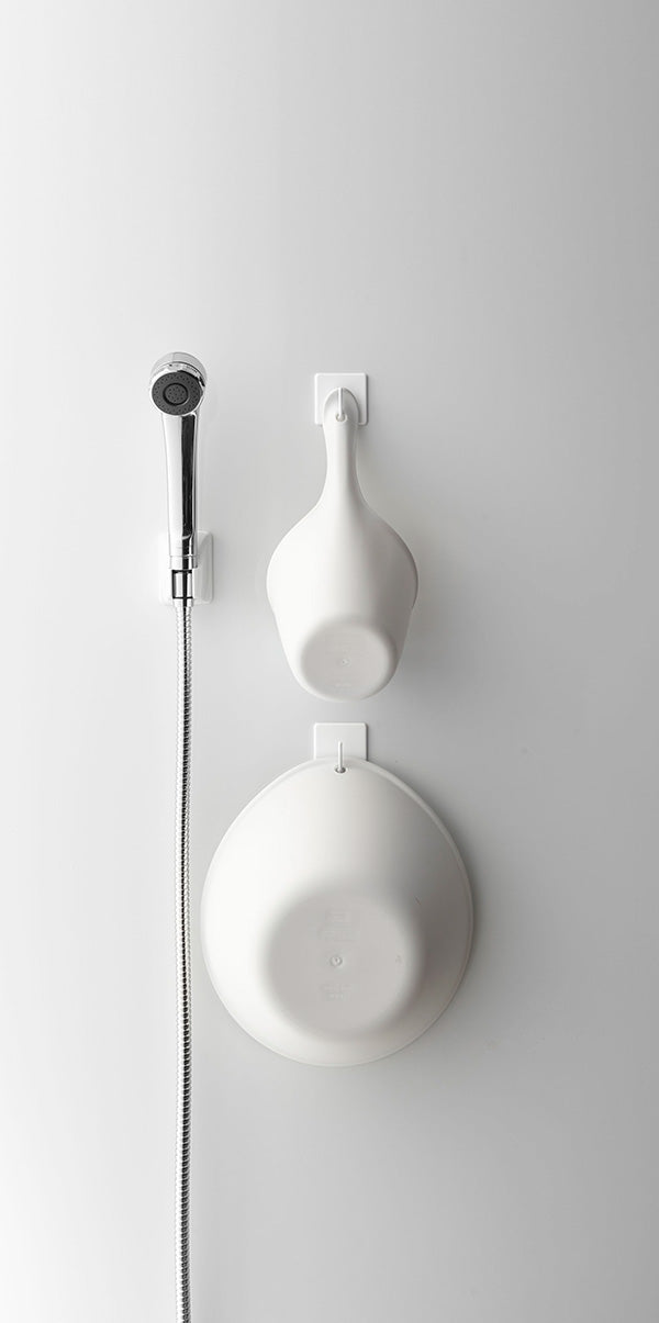 ●ピンポイントで掛けたいところに!風呂桶や片手桶の収納に。