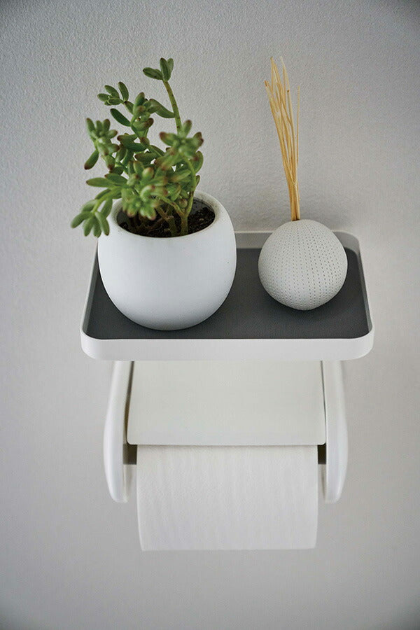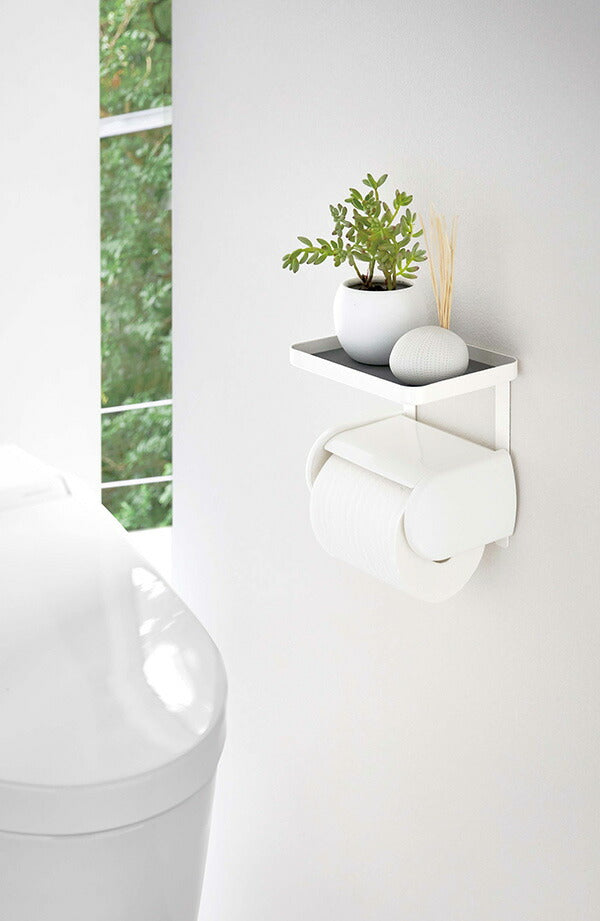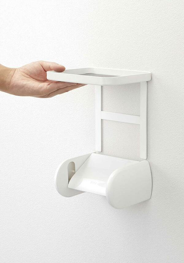 ●トイレットペーパーホルダーに差し込むだけの簡単取り付け!ホルダーの上が収納スペースに。