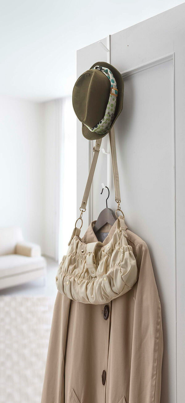 ●一番下のフックは子供が届く位置なので子どものコートを掛け、上のフックには大人の帽子とバッグなどを掛けると便利。