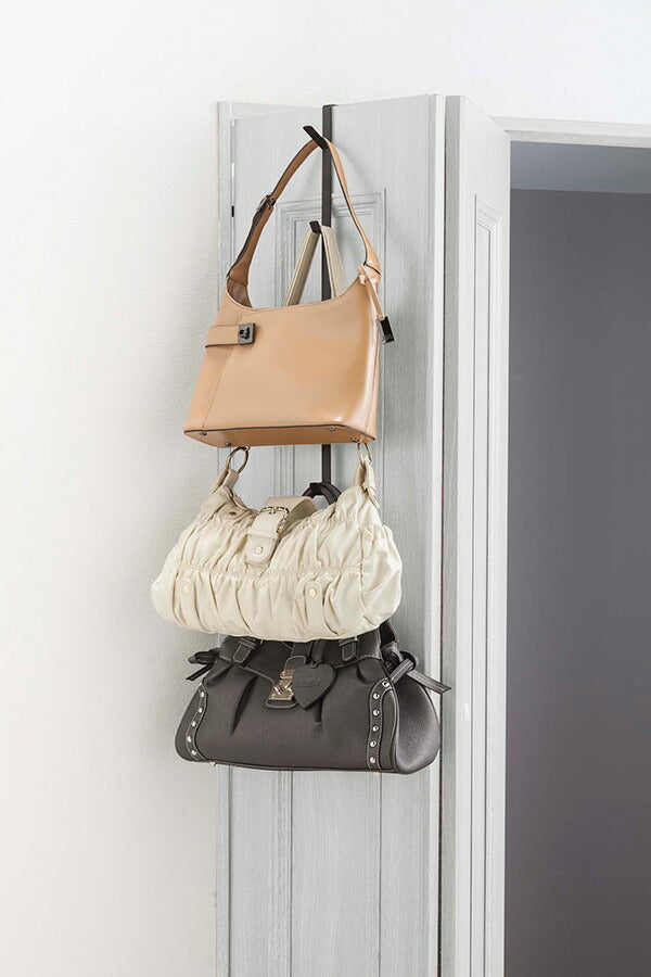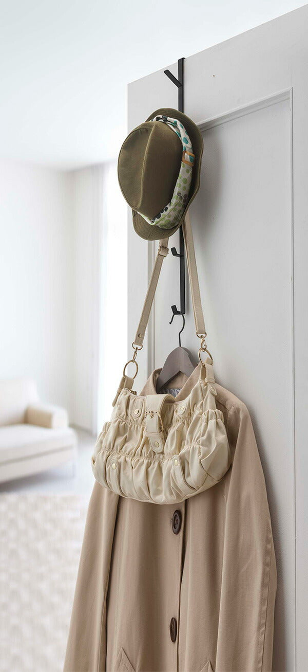 ●一番下のフックは子供が届く位置なので子どものコートを掛け、上のフックには大人の帽子とバッグなどを掛けると便利。