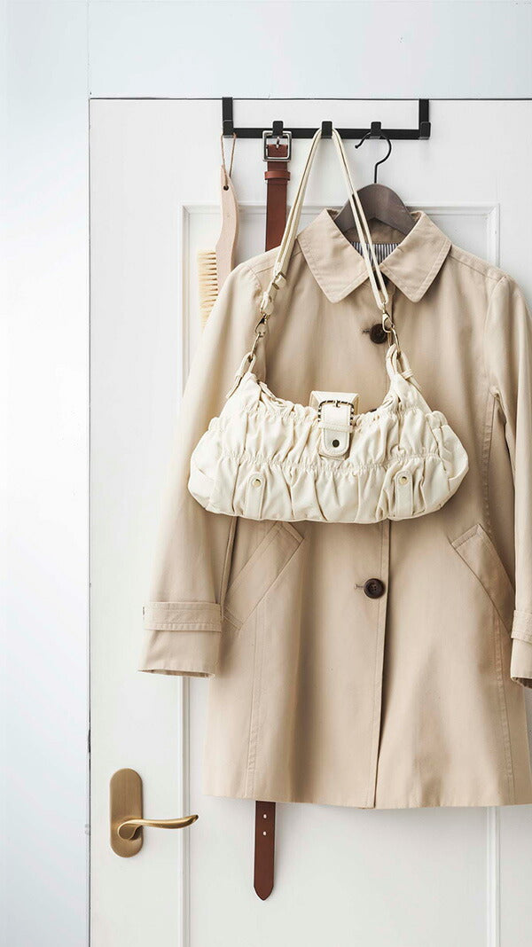 ドアの上やクローゼットの折れ戸にかけるだけ!横長タイプで省スペース型のドアハンガー。