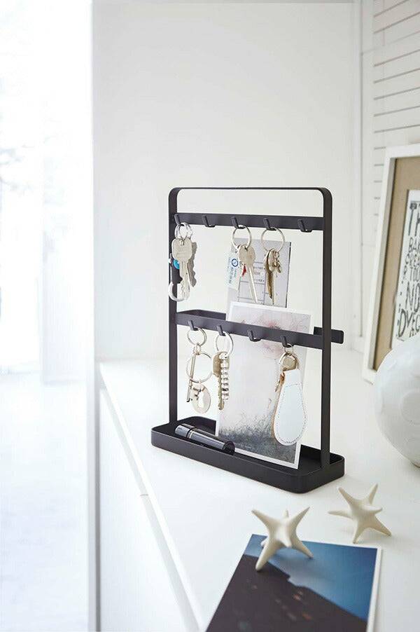 ●はがきや印鑑なども収納出来る便利なトレイ付きで上下2段式のキーフックスタンド。