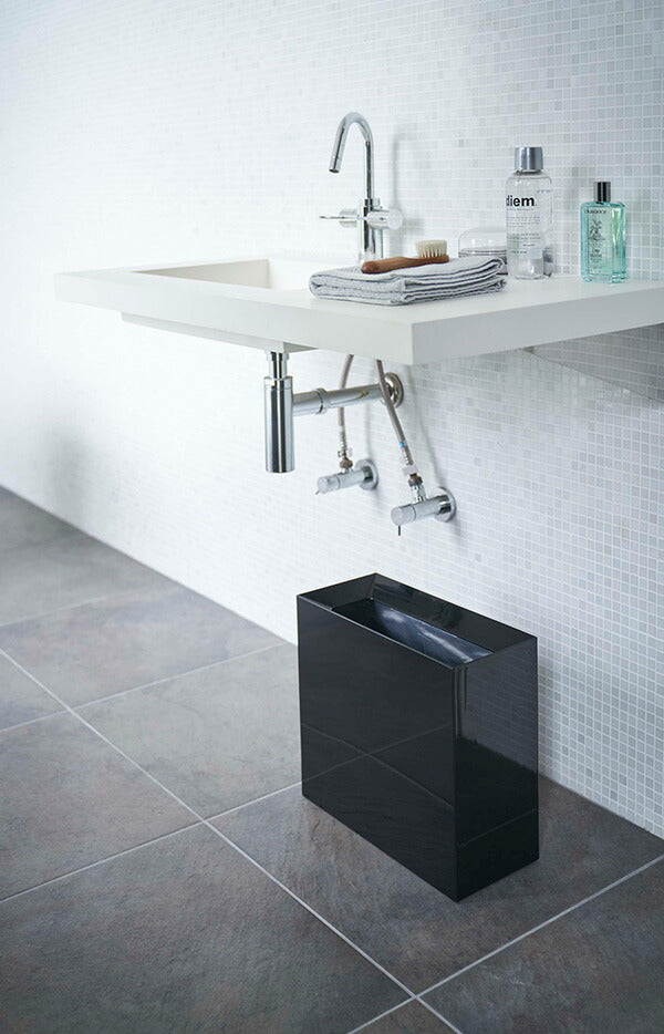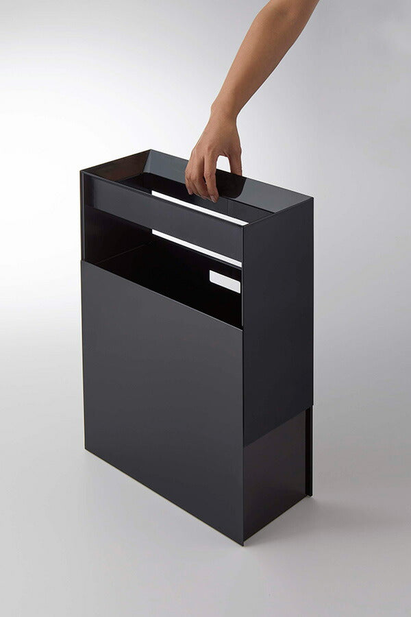 ●袋を引っ掛けても見えないシンプルでスタイリッシュなデザインのゴミ箱。