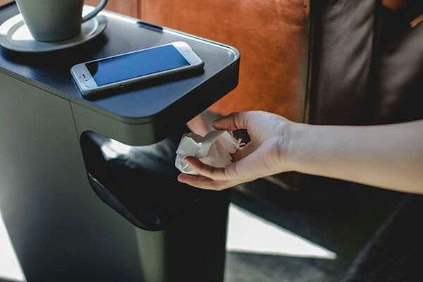 ●ゴミ箱上のスペースをテーブルにした、スタイリッシュなデザインのダストボックス+テーブル。
