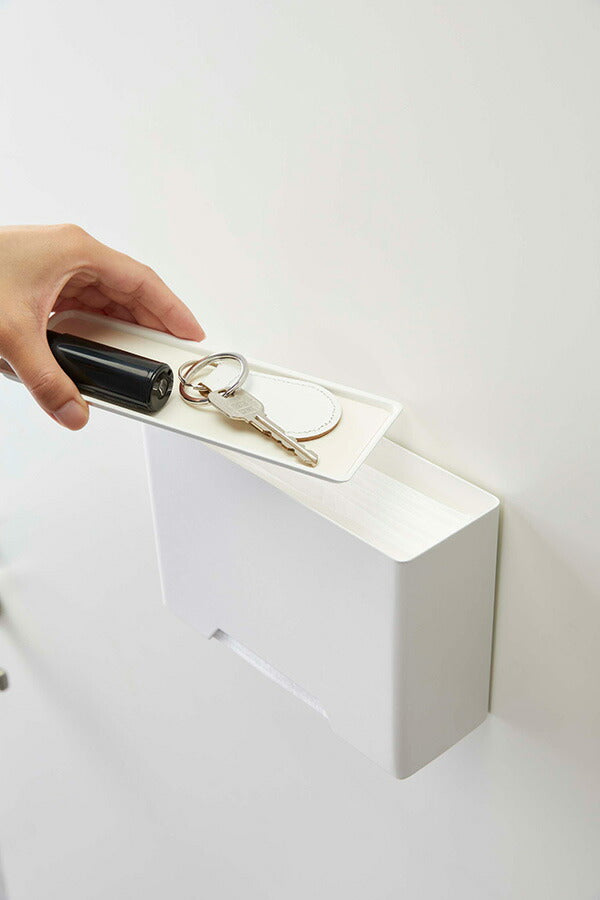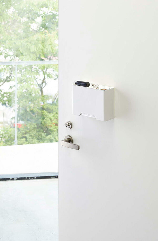 ●マグネットで簡単設置。マスクを玄関扉に収納できます。